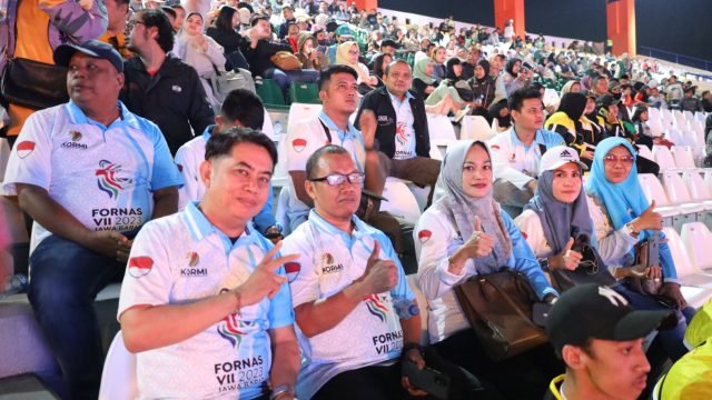 BANDUNG – Pengurus Komite Olahraga Rekreasi Masyarakat Indonesia (KORMI) Kabupaten Bungo menghadiri pembukaan Festival Olahraga Rekreasi Nasional (Fornas) VII 2023 di Stadion Si Jalak Harupat, Kabupaten Bandung, Jawa Barat, Minggu malam (02/07/2023).