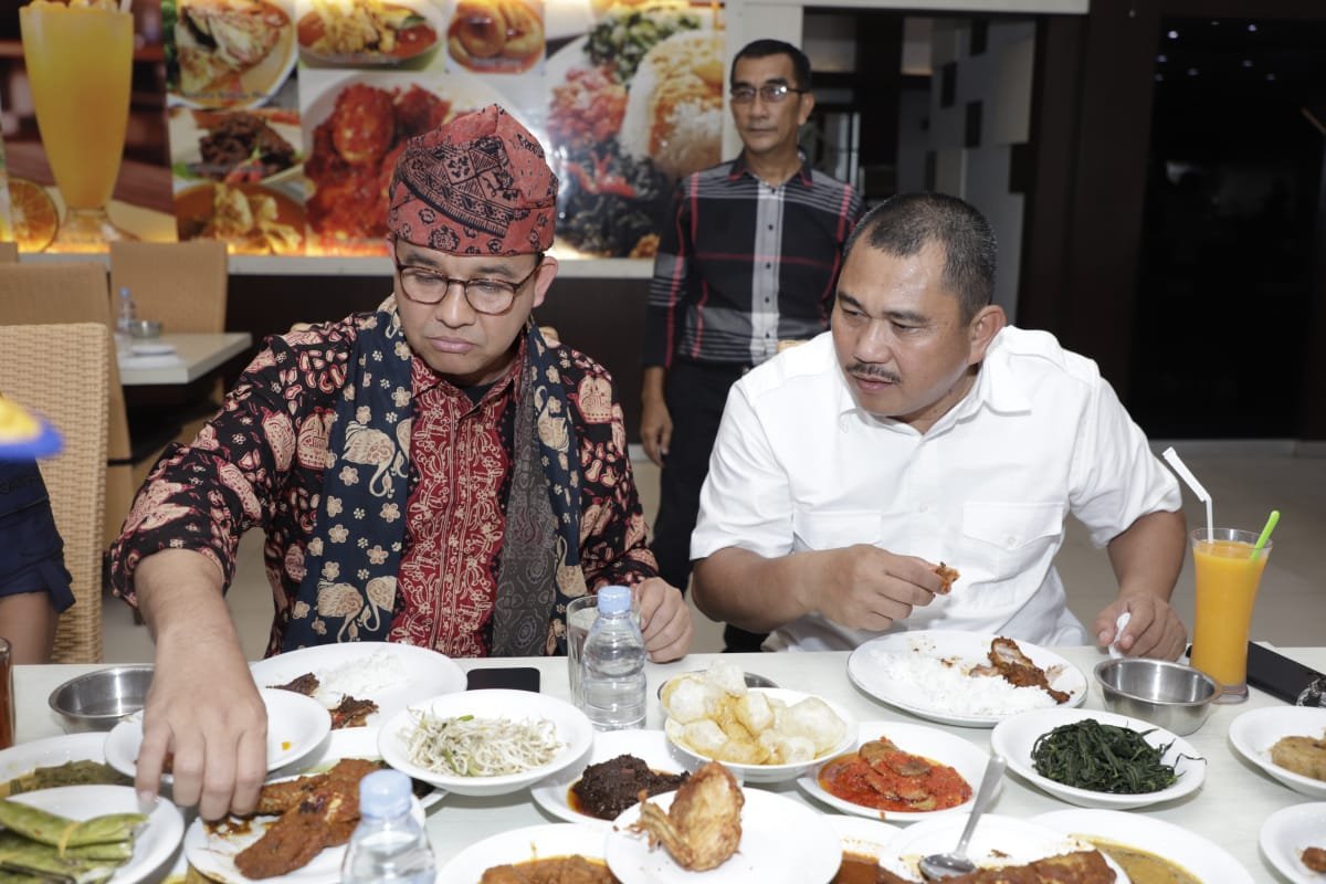 Jambi – Selain menghadiri agenda Rakernas Apdesi, Anies Rasyid Baswedan Capres koalisi perubahan dan perbaikan dijamu makan siang oleh partai koalisi perubahan provinsi Jambi. Terlihat hadir Ketua DPD Demokrat Jambi H. Mashuri, SP, ME didampingi Sekretaris DPD DR. Syamsu Rizal, Bendahara John Harles serta Kepala Bakomstrada Andas Toto, sementara dari Nasdem terlihat Hasbi Anshori sekretaris Nasdem Jambi bersama pengurus yang lain tampak membersamai keberadaan Anies dirumah makan Anduank. “Kita bicara panjang lebar dengan mas Anies, terhadap potensi pilpres khususnya Jambi dan Indonesia umumnya, beberapa masukannya menjadi motivasi positif bagi parpol koalisi jambi”, Ujar Hamas, ketua DPD Demokrat Jambi kepada awak media. Ditambahkan oleh bupati Bungo dua periode itu lagi, makan siang bersama mantan gubernur Jakarta itu sungguh berkesan, selain menambah keakraban partai koalisi, moment tersebut juga menjadi diskusi panjang untuk pemenangan Anies. “Tadi sempat disentil cawapresnya mas Anies, sebagai kader demokrat tentunya kita menginginkan ketum mas AHY yang dari sisi elektabilitas memang layak untuk disandingkan dengan mas Anies”, tandas Hamas lagi. Setelah menyantap makan siang, Anies dan Hamas melaksanakan sholat zhuhur bersama, dan ngobrol santai, sebelum bertolak ke balairung Universitas Jambi untuk menghadiri acara Apdesi se Indonesia. (***)