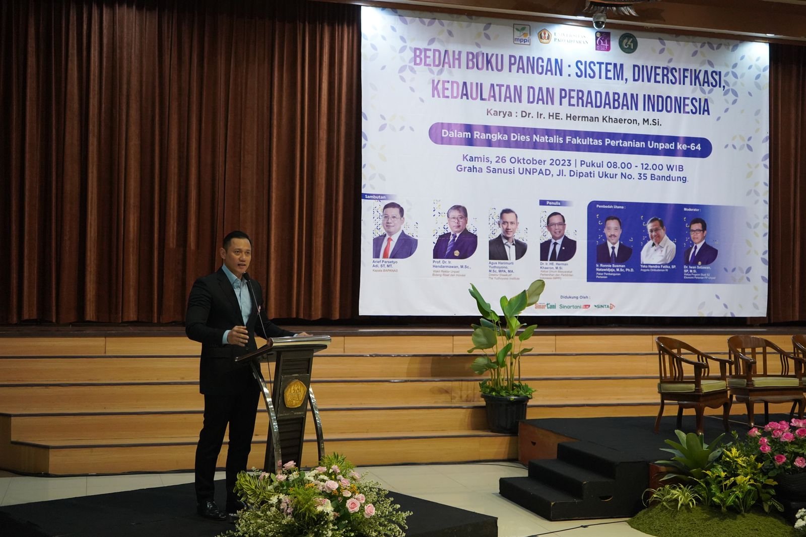 Direktur Eksekutif The Yudhoyono Institute Agus Harimurti Yudhoyono (AHY) menghadiri acara tersebut untuk memberikan sambutannya di Graha Sanusi Jl. Dipatiukur No. 35 Bandung, Kamis (26/10) pagi. AHY memberikan apresiasi dan selamat atas penerbitan buku tersebut.