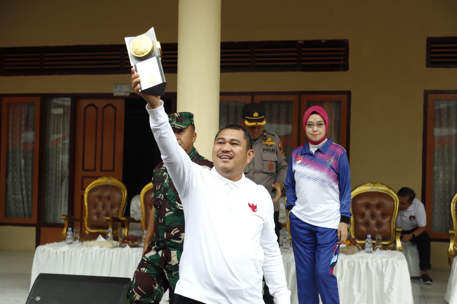 Muara Bungo – Kabupaten Bungo kembali mendapatkan piala adipura katagori kota kecil yang dinilai bersih. Adipura tersebut, hari ini (8-3-2024) diarak keliling kota Bungo, dan finis dihalaman rumah dinas Bupati Bungo. Adipura tahun 2024 ini ternyata membawa berkah bagi petugas kebersihan dibawah naungan dinas LH. betapa tidak, dalam perayaan secara sederhana dihalaman rumah dinas, para pasukan oranye bernyanyi riang gembira dihadapan Bupati dan unsur muspida, disela-sela itu, mereka menyampaikan aspirasi kepada orang nomor satu dibumi langkah serentak limbai seayun itu. “Piala adipura Empat kali berturut-turut, kami minta pak bupati naikkan honor kami”, teriak salah seorang petugas yang disambut riuh petugas lainnya. Menyikapi aspirasi tersebut, H. Mashuri SP, ME langsung memanggil Kadis LH Giyatno dan langsung membahas masalah honorium petugas kebersihan. Tak lama berselang, Hamas sapaan akrabnya yang sedang dikerumuni petugas kebersihan langsung menyampaikan. “Insya Allah aspirasi ibu-ibu dan bapak-bapak kebersihan akan kita penuhi, dari 1.2 juta akan kita naikkan menjadi 1.6 juta”, tandas Hamas yang disambut riang para petugas kebersihan. Dilanjutkan pria yang juga ketua DPD demokrat Jambi itu lagi, kenaikan honor petugas kebersihan tersebut mulai direalisasikan pada bulan april. “Sekarang maret, maka saya mintak bulan april mereka sudah bisa menerima honor yang sudah kita janjikan, yakni 1.6 juta”, ucapnya lagi. Mendengar pernyataan tersebut, para petugas kebersihan langsung berteriak gembira sambil mengucapkan terima kasih kepada Bupati Bungo. (****)